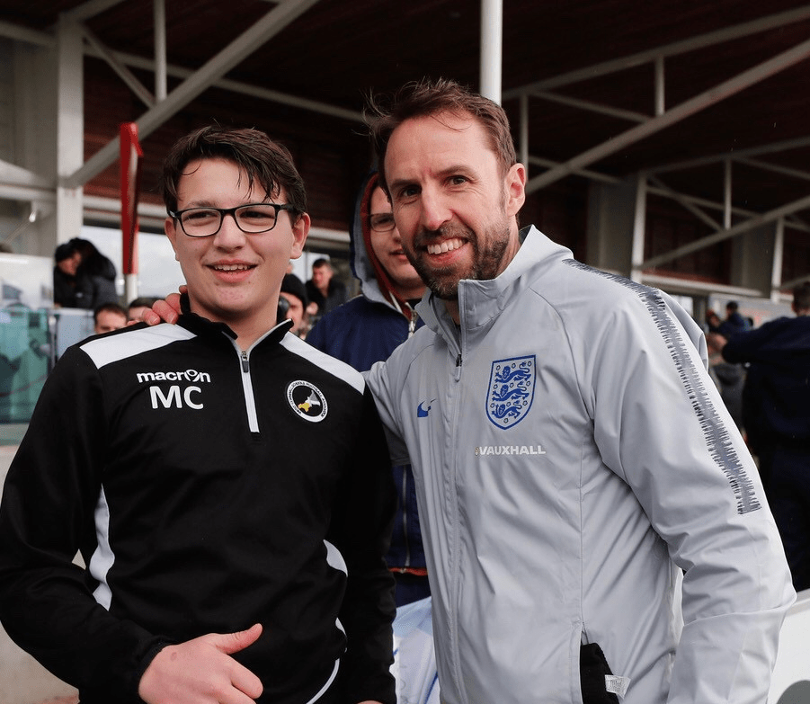 Three months ago he met his hero, goalie Joe Hart, and spent time with the England squad at St George’s Park, including Football Manager, Gareth Southgate (pictured above with Morgan). Whilst there, he found out about a prestigious summer training camp at Manchester City.